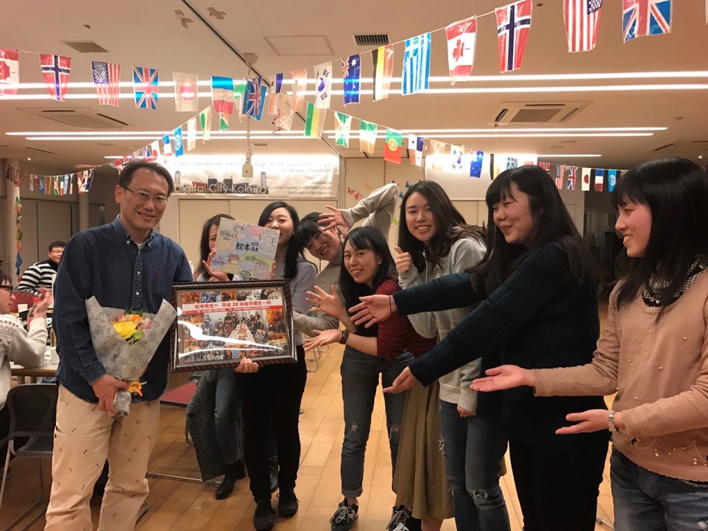 博士前期課程の王さん、沈さん、佐々木さん、4年生の岩本さん、宇都宮さん、杉丸さん、野澤さんの送別会を行いました。
